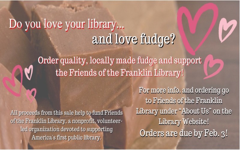 By MyFM's Claire Beverly - The Friends of the Franklin Library’s Valentine’s Day fundraiser features locally made fudge. Fudge orders are due by Saturday,... Read More.
