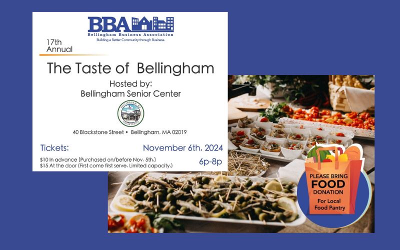 17th Annual Taste of Bellingham!! Featuring our local restaurants & vendors!! BBA Board Members, Middlesex Bank, Dean Bank and the Senior Center have tickets. Always a great night to support local!!