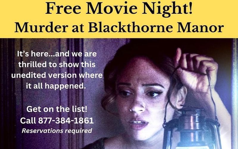 “Murder at Blackthorne Manor” returns! Filmed exclusively at Proctor Mansion Inn 16 months ago. If you’ve never seen the movie, or even if you’ve seen it a few times, join us for a free night out and see the unedited version! Free snacks, including real movie popcorn, and a cash bar will be provided. A house tour will be available at the end of the movie for anyone who desires to see the rest of the mansion and gain some valuable historical information. The movie will be shown in our L’Enfant Ballroom, where space is limited, so register for your seats early! To reserve, call 877-384-1861.