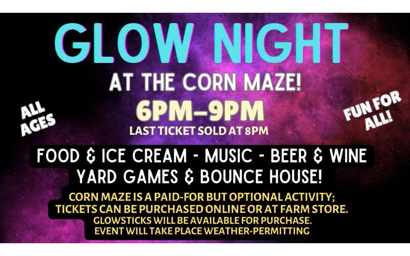 All ages fun! Parking is free; corn maze admission is $10.00 per person for ages 6 & up. Last entry to the maze is at 8pm!