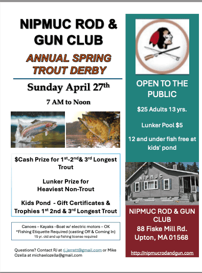 NIPMUC Rod & Gun Club will be hosting it’s Annual Spring Trout Derby