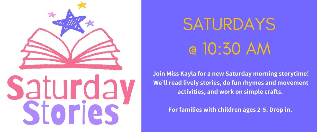 Join Miss Kayla on Saturday mornings for a lively storytime full of fun books, playful rhymes, movement games, and more. It’s the perfect way for families with kids ages 2–5 to connect, learn, and play together. No registration needed.