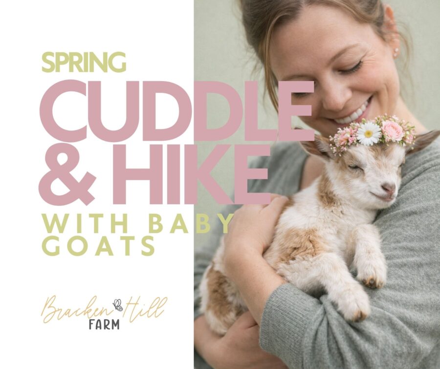 Join us for a joyful, hands-on spring experience where guests will help adorn our sweet baby goats with soft floral crowns before spending time cuddling and connecting with them in the barn. After plenty of snuggles (and photos!), we’ll head out together for a guided hike through our forest trails with the herd.