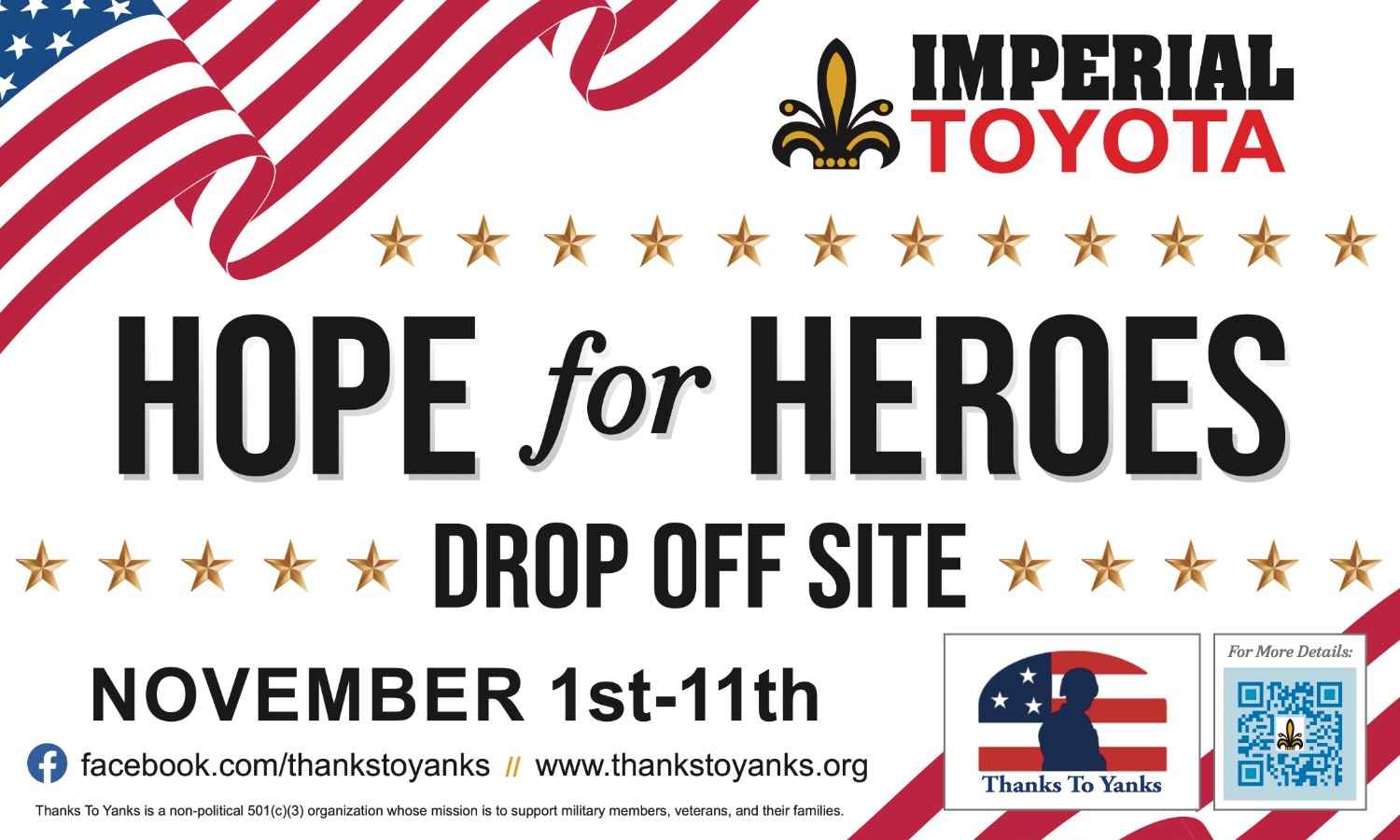 Help make a difference for veterans in need! Thanks to Yanks is gathering donations as part of their Hope for Heroes campaign, aimed at supporting homeless veterans and veterans in need.