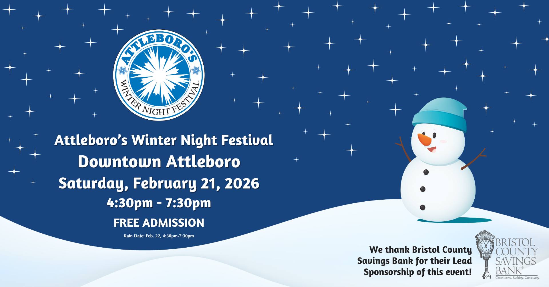 Its baaaaccckkk! The Winter Night Festival returns to Downtown Attleboro on February 21st from 4:30–7:30 PM! Join us as we celebrate 15 years of this beloved community tradition with even more wintertime fun to help shake off the winter blues.