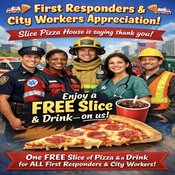 Slice Pizza House is offering one free slice of pizza and a drink to all first responders and city workers for their service.
