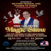 MILFORD — Thanks To Yanks is hosting a free children’s magic show on Sunday, March 15, for families of first responders, veterans, and those currently serving in uniform.